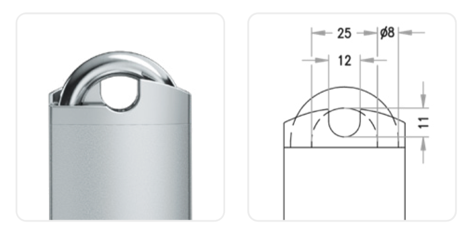 | BS - Bảo vệ càng khóa Hệ thống bảo vệ càng khóa BS tăng cường tối đa độ an toàn cho ổ khóa HM24. Sự kết hợp giữa càng khóa ngắn làm bằng thép cứng và lớp bảo vệ càng khóa xung quanh giúp việc phá khóa bằng dụng cụ phá khóa (kìm cắt bu lông) trở nên cực kỳ khó khăn.